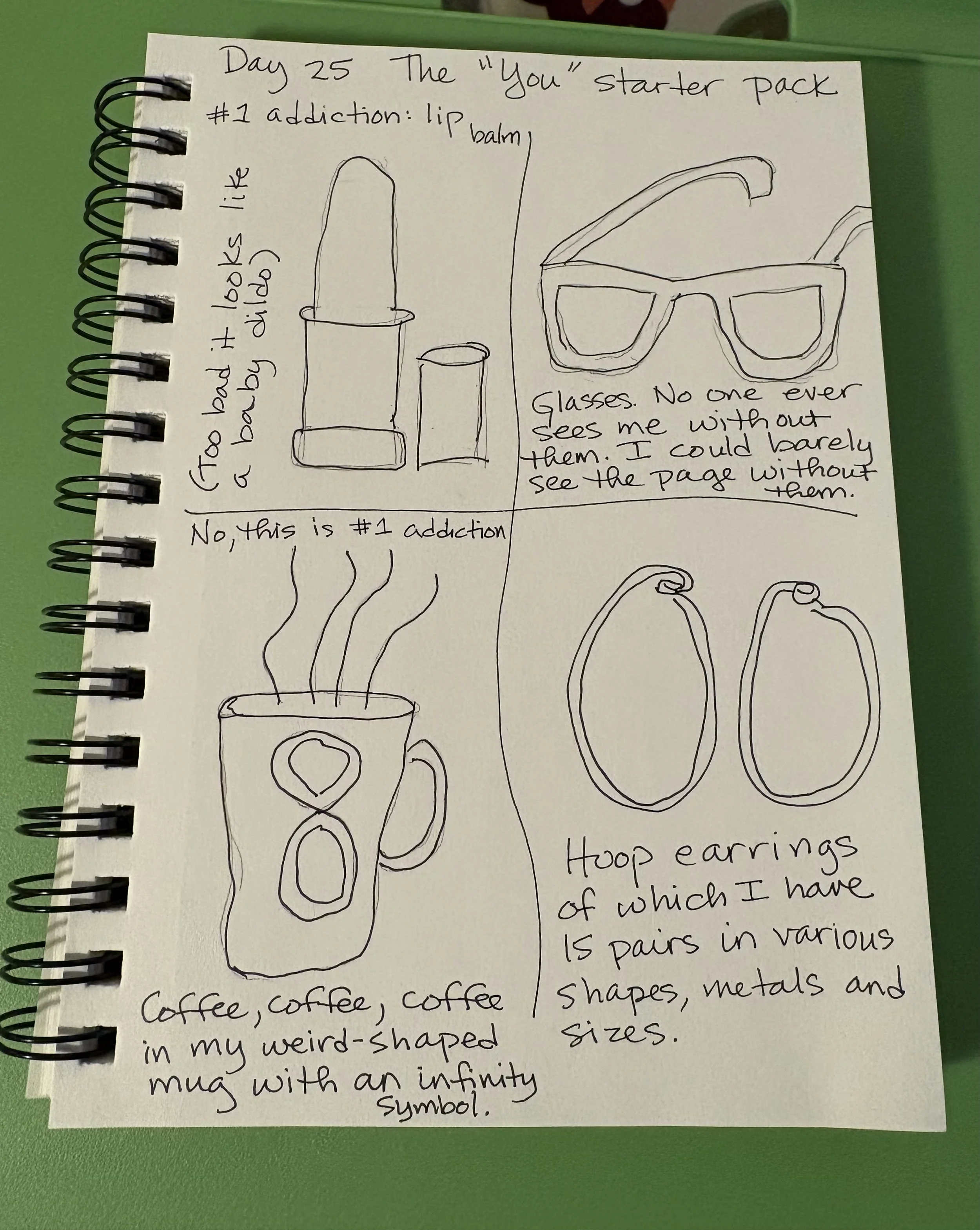 I have said over and over again I am not an artist. Recently I’ve amended that statement to "not a visual artist.” But I so admire people who can paint and draw and have always wanted to join them. This January for some strange reason (turning 69?) when DrawTogether With WendyMac popped into my Substack feed, I decided to take the plunge and commit to Wendy’s 30 day drawing challenge.